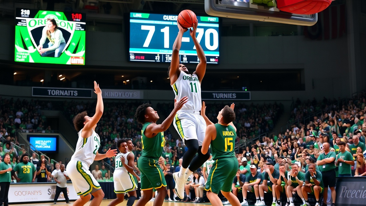 Nate Bittle ha contribuito con 14 punti, 11 rimbalzi e quattro rubate. I suoi due tiri liberi, realizzati a 10 secondi dalla fine, sono stati decisivi per la vittoria di Oregon. Takai Simpkins ha segnato 12 punti e Drew Carter 11 punti per i Ducks (10-17, 3-13 Big Ten).