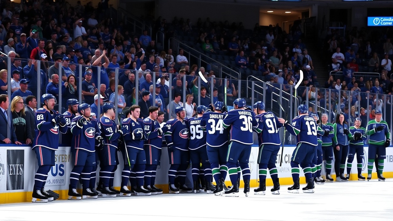 Kirill Marchenko ha segnato due gol e ha fornito un assist, estendendo la sua striscia di punti a sette partite. Dmitri Voronkov ha segnato un gol e ha fornito 2 assist. Denton Mateychuk ha avuto un assist ed è stato un +2. Adam Fantilli ha fornito due assist e ha registrato cinque tiri. Elvis Merzlikins ha parato 21 dei 25 tiri dei Canucks.