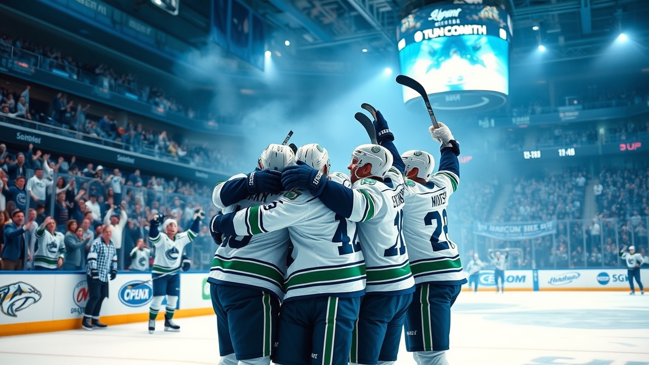 Matthew Wood ha segnato il suo 14° gol della stagione, tirando il disco dall’angolo sinistro; il tiro si è deviato su Liam Öhgren di Vancouver ed è finito in rete, dando a Nashville un vantaggio di due gol. Marco Rossi ha segnato su un rimbalzo, riducendo il vantaggio dei Predators a uno con cinque minuti rimasti nel terzo periodo. Con un minuto rimasto nella partita e l’attaccante extra in campo, Filip Hronek ha segnato per pareggiare il match.