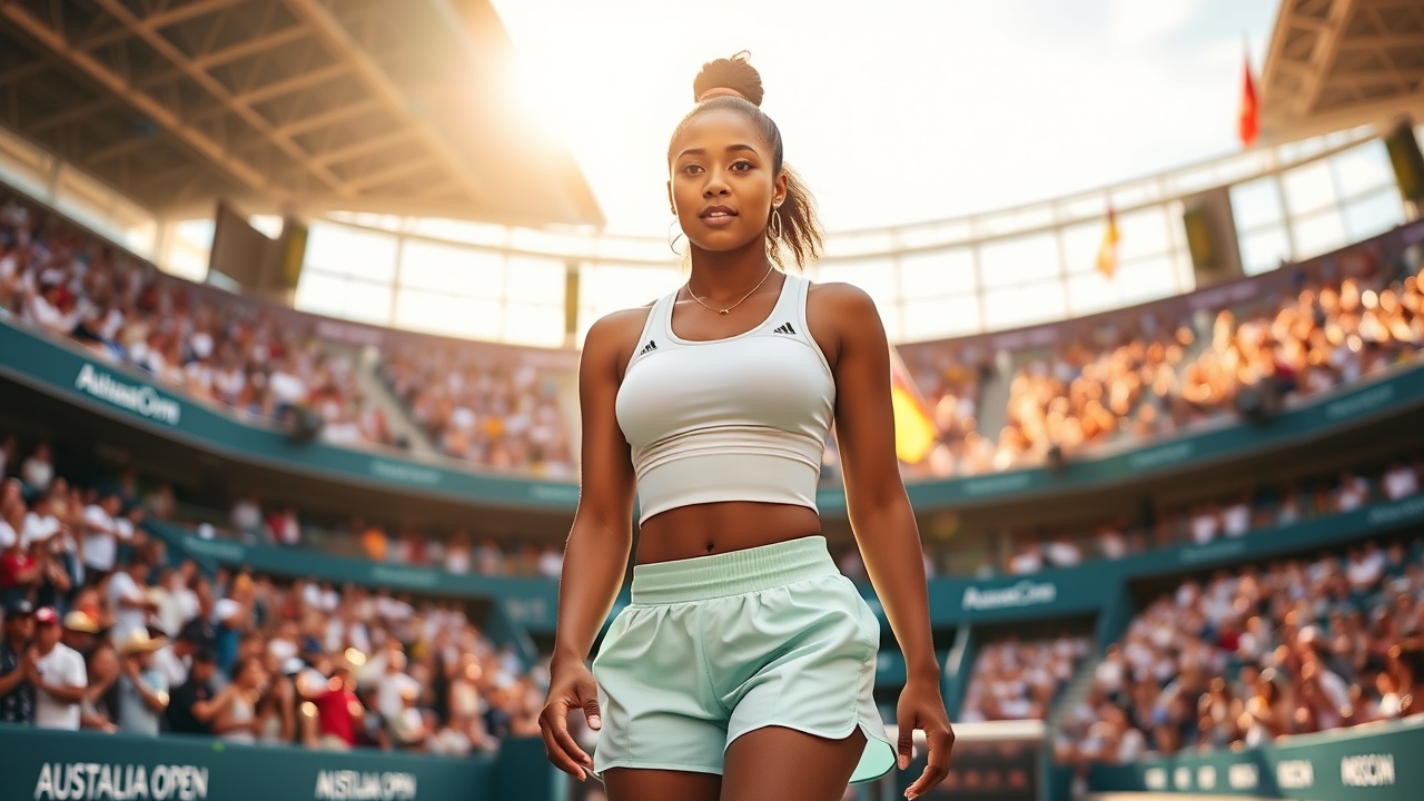 La dichiarazione di moda della due volte vincitrice dell’Australian Open era diventata virale prima della sua vittoria d’apertura nel torneo di inizio stagione all’Arena Rod Laver. Nel secondo dei campi da spettacolo al Melbourne Park, per il suo match di secondo turno contro Sorana Cirstea, Osaka ha semplificato il suo outfit. Ha abbinato una giacca da riscaldamento negli stessi toni blu e verde acquatici del suo vestito Nike e indossava una visiera.