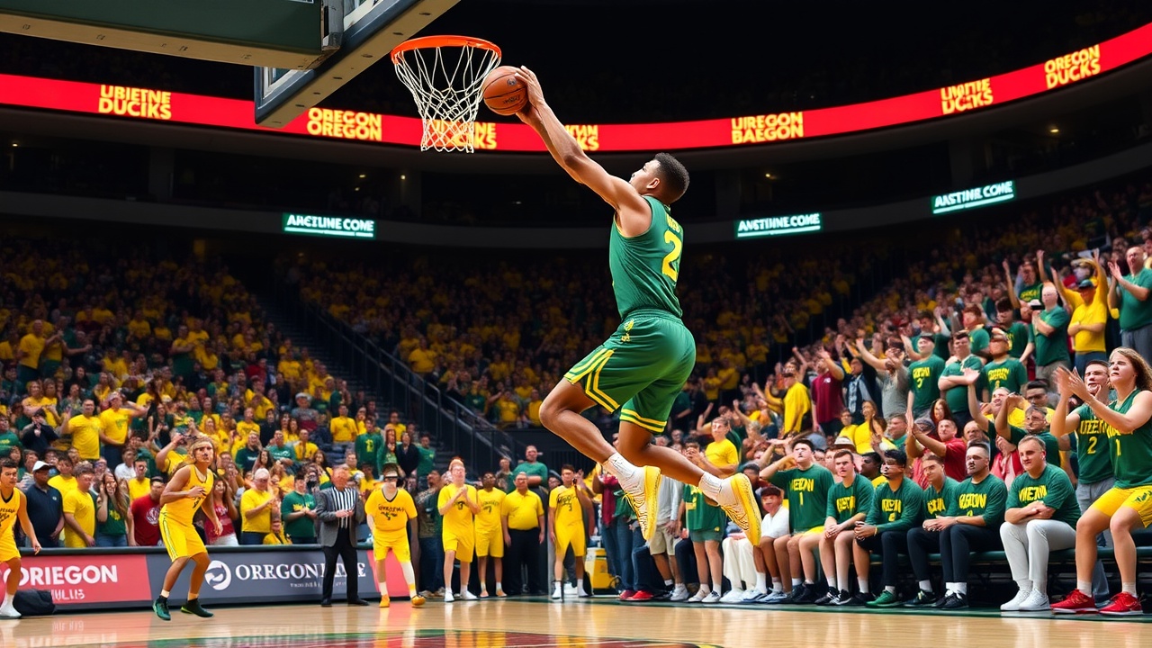 Kwame Evans Jr. ha segnato 16 punti e ha eguagliato il massimo stagionale con quattro stoppate, mentre Wei Lin ha contribuito con 13 punti per i Ducks. Sean Stewart ha messo a segno due schiacciate in un parziale di 11-2 che ha permesso a Oregon di prendere un vantaggio di 11 punti con 6:24 rimasti.