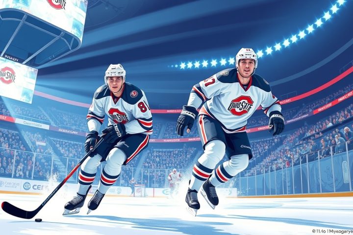 AHL·Big Ten·Boston Bruins·Buffalo Sabres·Colorado Avalanche· Due ex giocatori di hockey dell’Ohio State stanno avendo successo nella NHL Febbraio 3, 2026 Editor Introduzione 20 gennaio 2026; Dallas, Texas, USA; Il difensore dei Boston Bruins Mason Lohrei (6) osserva…