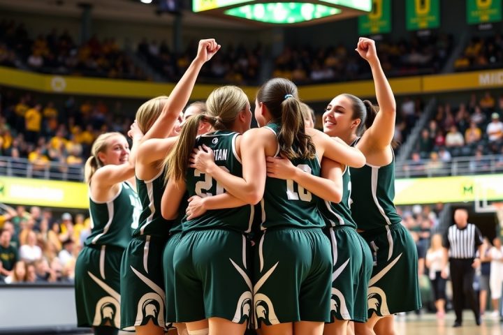 Basketball·Big Ten Conference·Golden Gophers·Grace VanSlooten·Jalyn Brown· La No. 18 Michigan State femminile interrompe la striscia vincente di 9 partite della No. 23 Minnesota con una vittoria per 75-61 Febbraio 23, 2026 Editor Risultati della Partita MINNEAPOLIS (AP) — Jalyn Brown ha segnato 20 punti e Kennedy Blair ha…