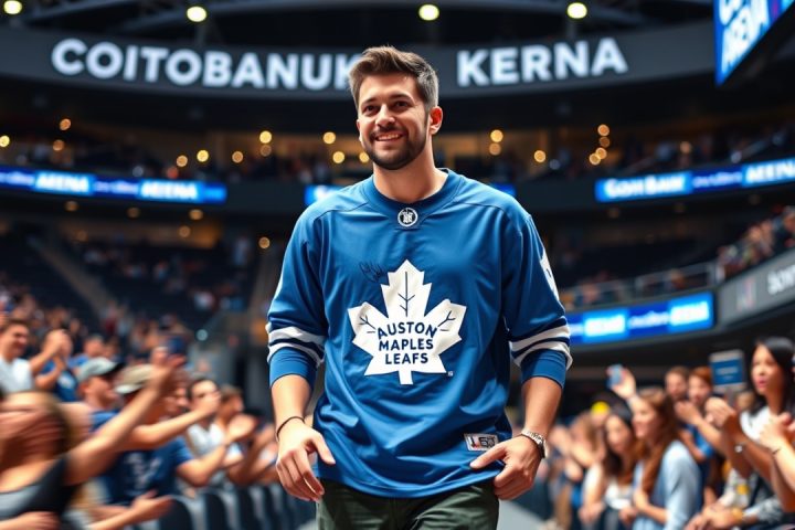 Auston Matthews·Basketball·Kyle Lowry·Maple Leafs·NHL· Kyle Lowry indossa una maglia dei Maple Leafs firmata da Auston Matthews allo Scotiabank Arena Gennaio 13, 2026 Editor Un Arrivo Memorabile allo Scotiabank Arena Durante l’arrivo dei Philadelphia 76ers allo Scotiabank Arena per una…